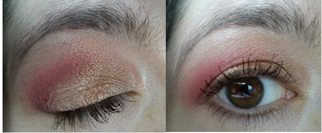 The following two photos show a made-up eye which has eyeshadow and eyeliner applied to the places indicated in the first two diagrams and the areas discussed above: