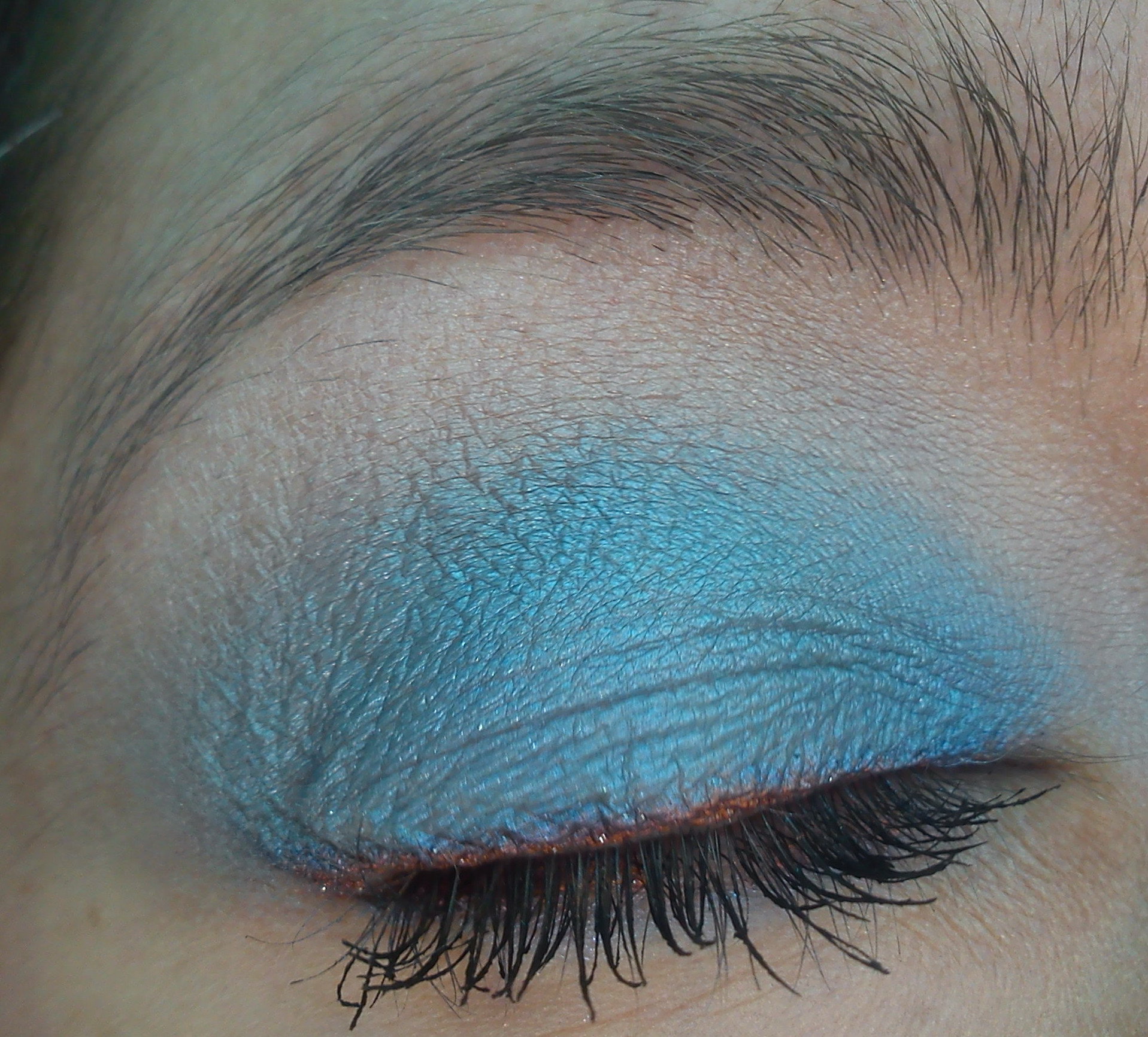 This look uses a bright blue on the lid, adding a nice level of contrast to the bronze eyeliner.