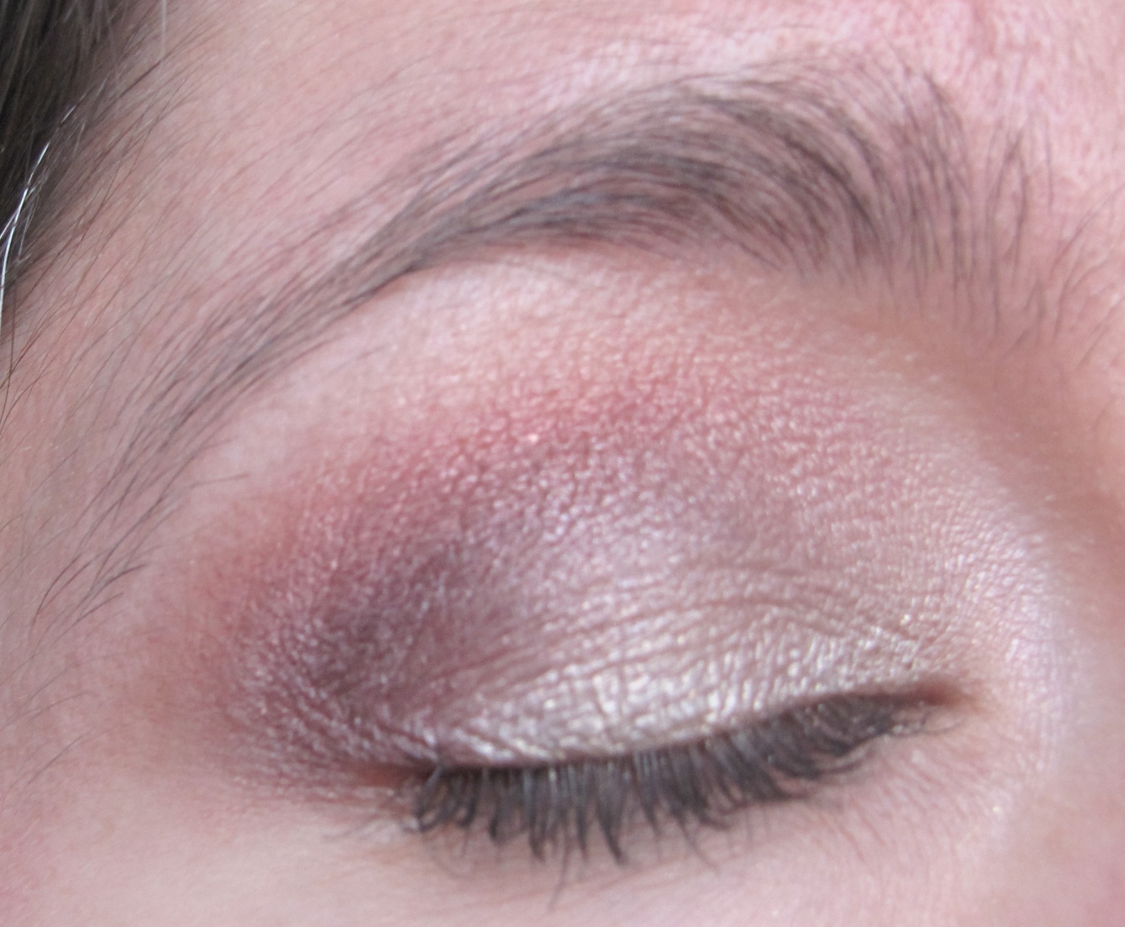 Shimmery champagne-pewter eyeshadow is neutral enough to pair with a variety of different colours. For this look, I used berry hues in the crease to add some warmth and depth to the eye. Here’s how to re-create this look:
