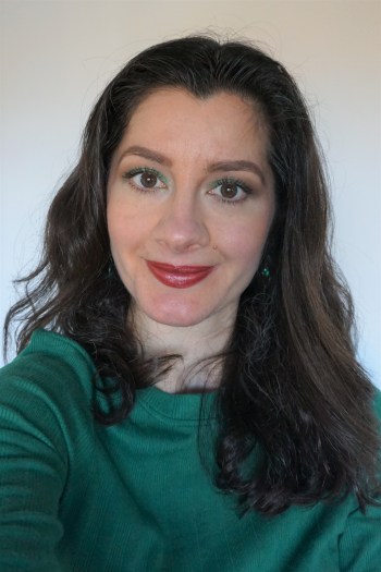 For this look, I used a bright jewel green eyeshadow with medium and deep chocolate browns in the crease to create a jewelled effect on the eyes. I used the Urban Decay Vice 3 palette to create this look but you can use any brand of eyeshadow you like which has similar shades.