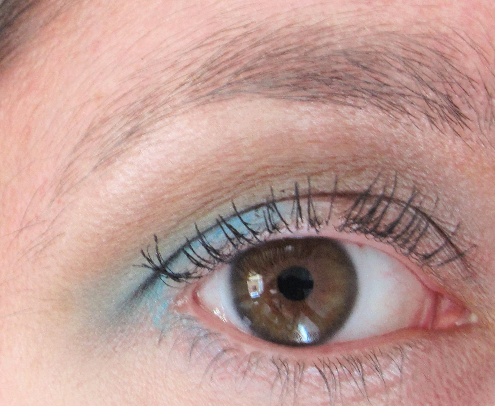 2. Take a pencil brush (e.g. MAC 219, pointed end of Bare Minerals Precision Eye Brush) and apply Blue Candy to the outer v section of the eye. Take Blue Candy very lightly up into the crease.