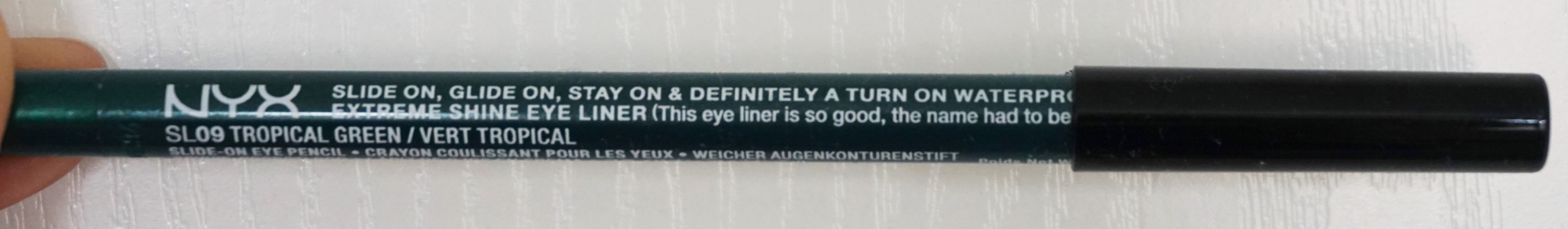 I chose the shade ‘Tropical Green’ as I’ve been looking for an emerald green liner for ages and haven’t been able to find one that I like. One sweep on the hand to test it out and I was instantly sold! The NYX liner applies beautifully, with absolutely no tugging or dragging on the eye area. The liner glides on effortlessly, as if it was butter. Despite the gliding, the liner still stays smudgeproof and transfer proof. Quite a feat to have a liner which goes on smoothly, yet doesn’t smear across the day or need set with eyeshadow.