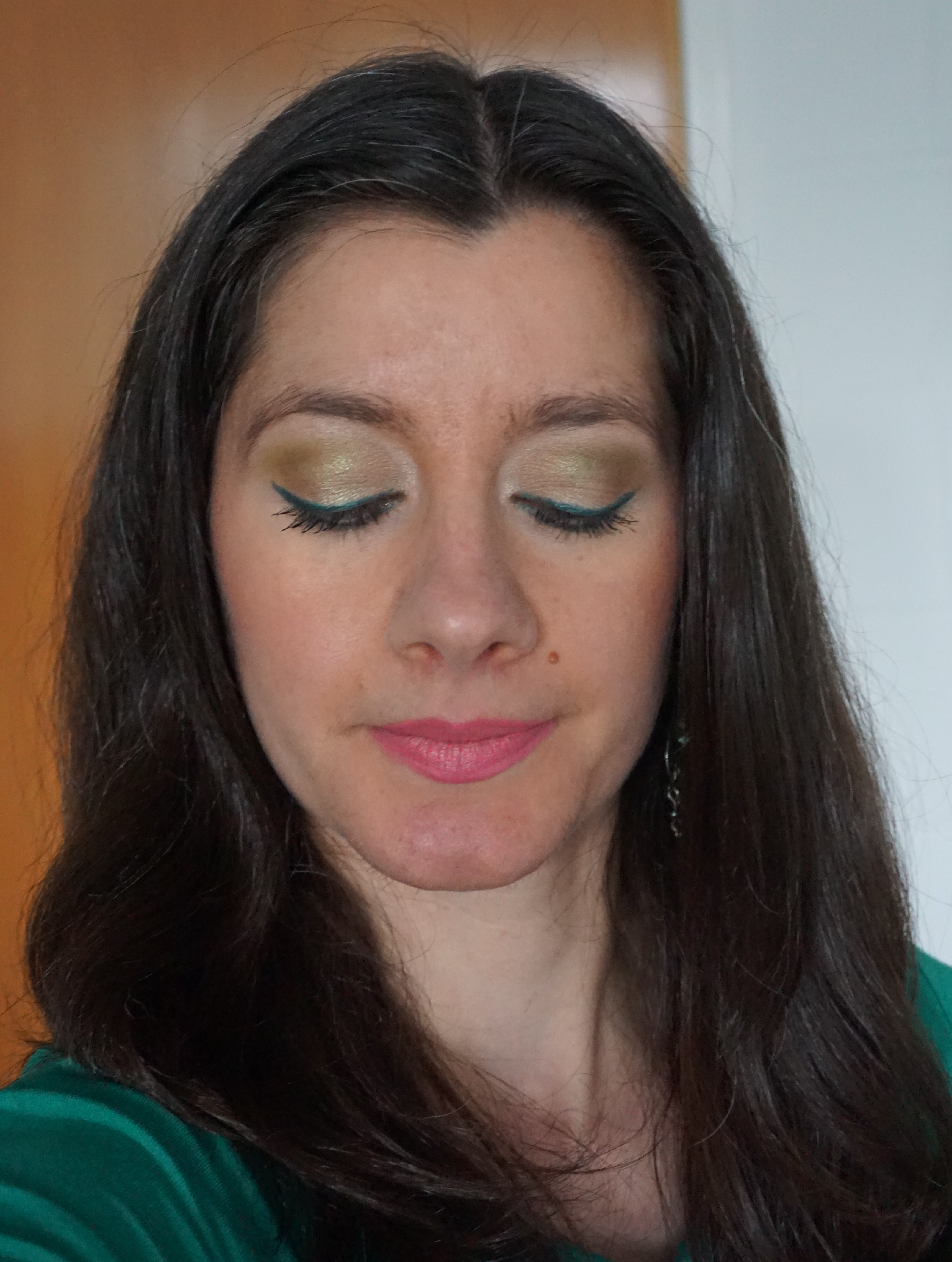 Green is one of my favourite colours and so I wanted to create a look based around this shade. I combined together the NYX Slide-on Eye Pencil in Tropical Green with gold and lime green eyeshadows. I completed the look with golden peach blusher on the cheeks and a satiny peachy-coral on the lips.