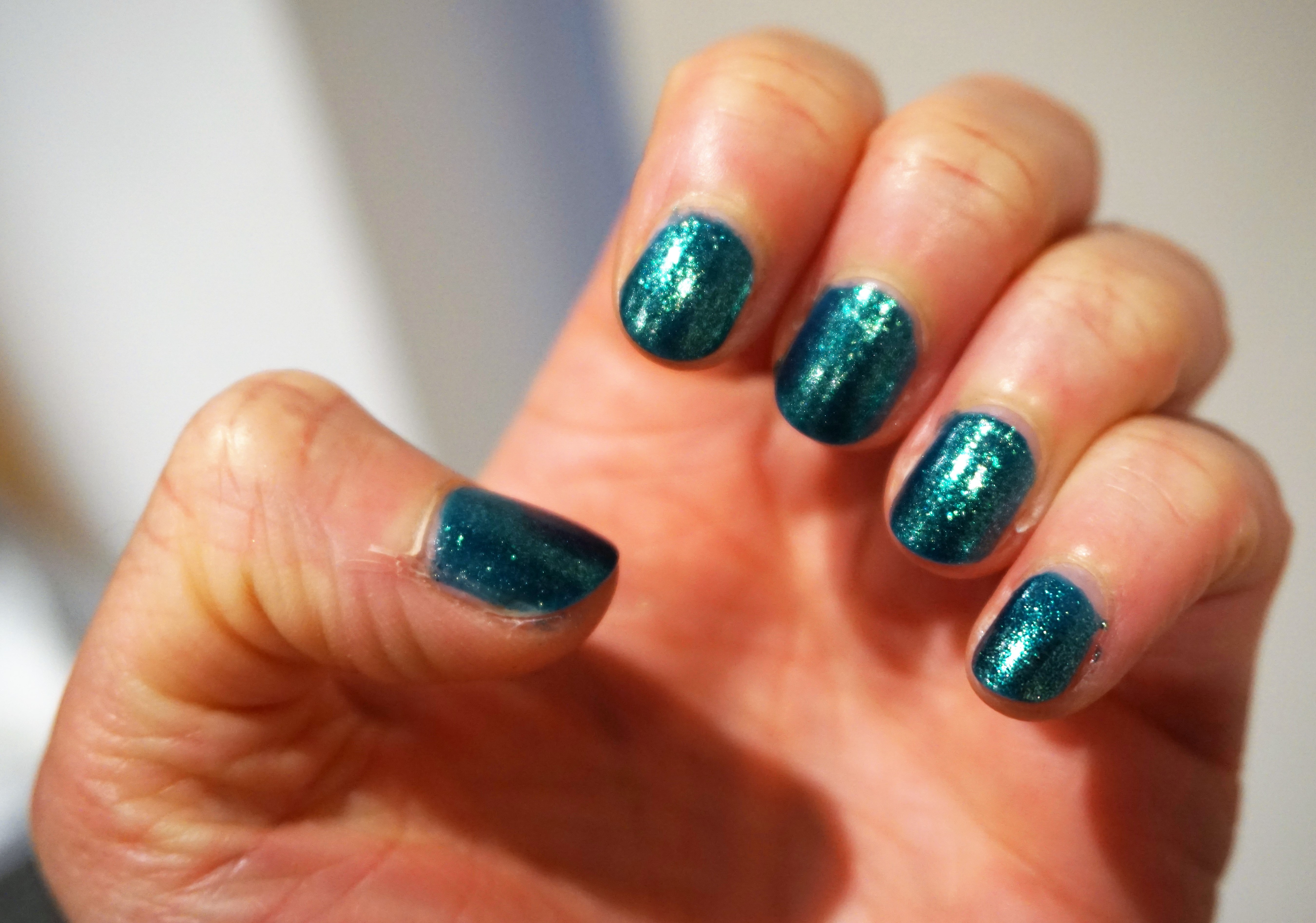 Something that I really love about this particular shade is that it looks even more metallic, deeper and shinier at night-time under bright lights. The teal really comes through and looks even deeper in hue. So pretty!