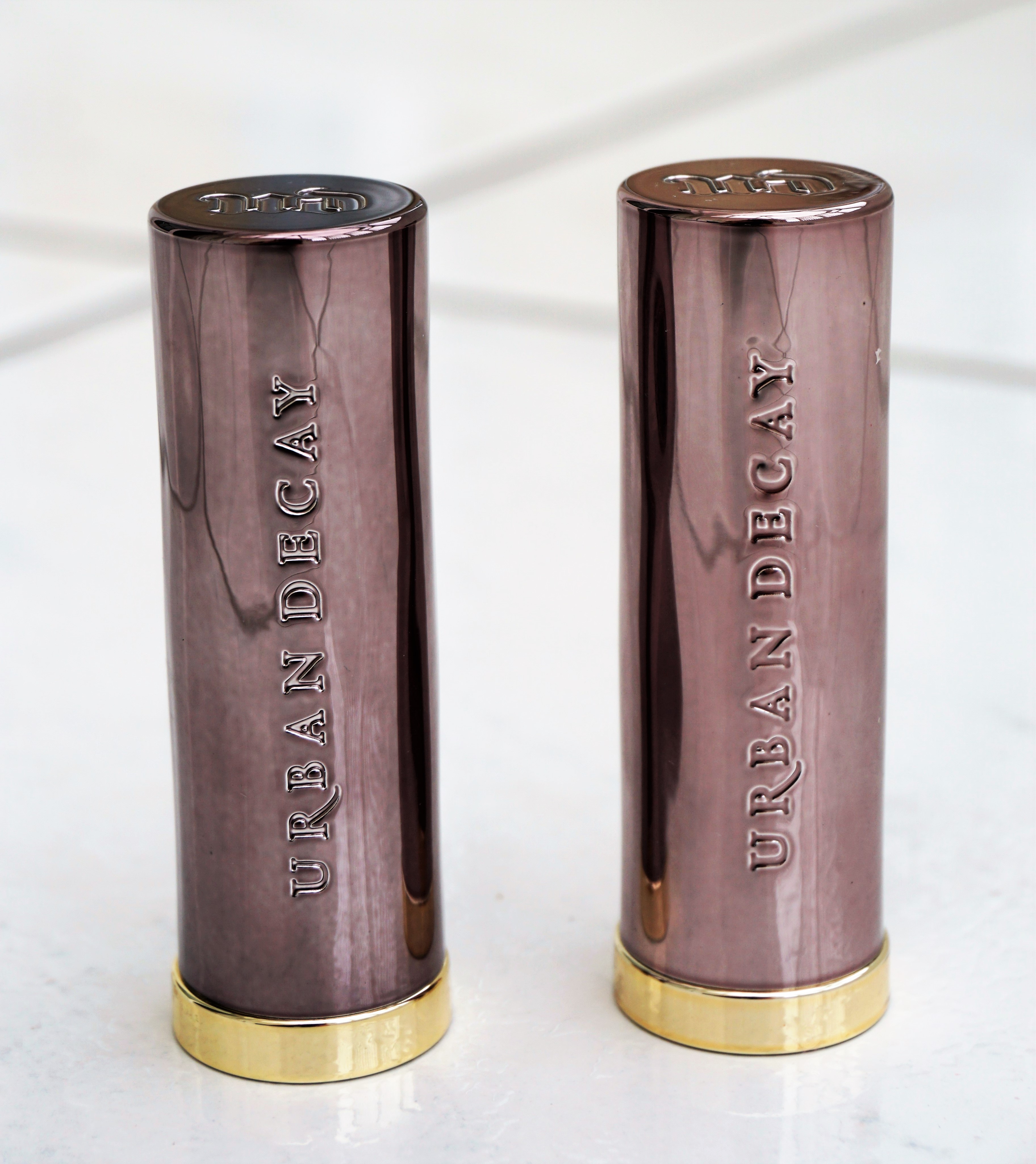 The lipsticks themselves come in sleek silver chrome and gold tubes. The Urban Decay logo is written on the side of the tube and the initials are embossed on the top.