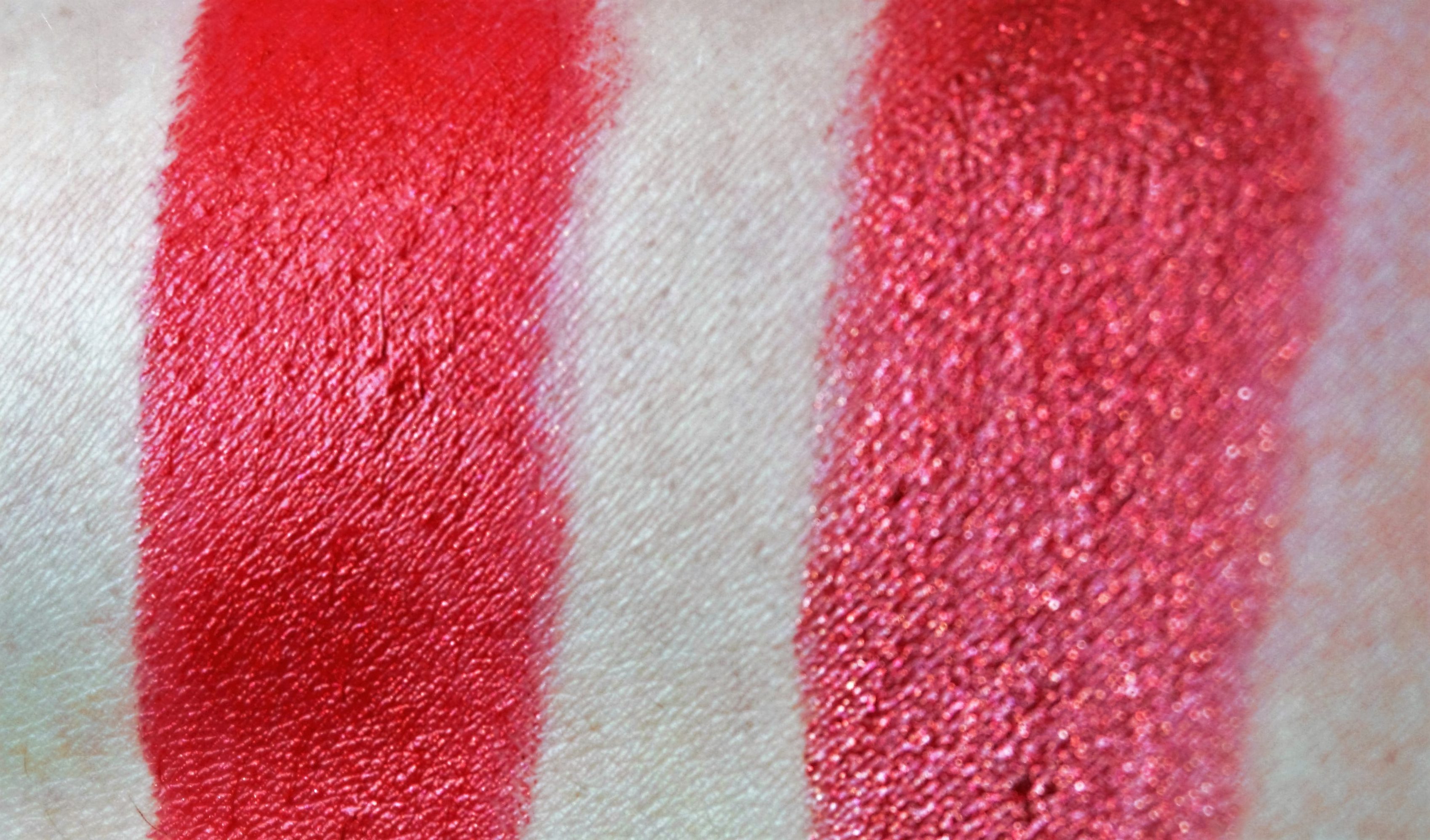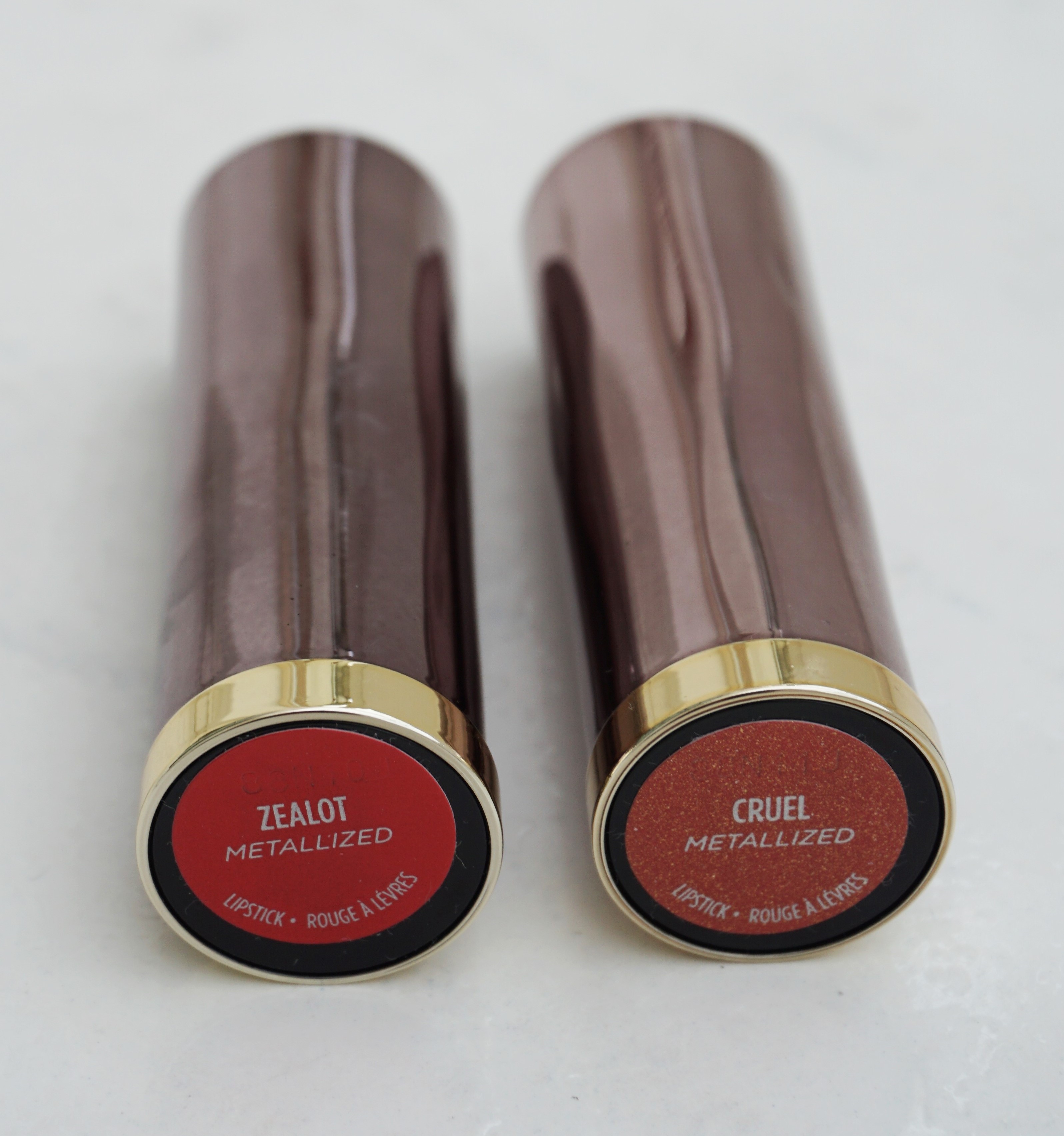 Zealot (above left in both photos) is a ruby-red shade with a metallic, slightly shimmery finish. I looooove this shade! It’s very flattering in that it has a subtle warmth to it and also makes the lips really stand out.