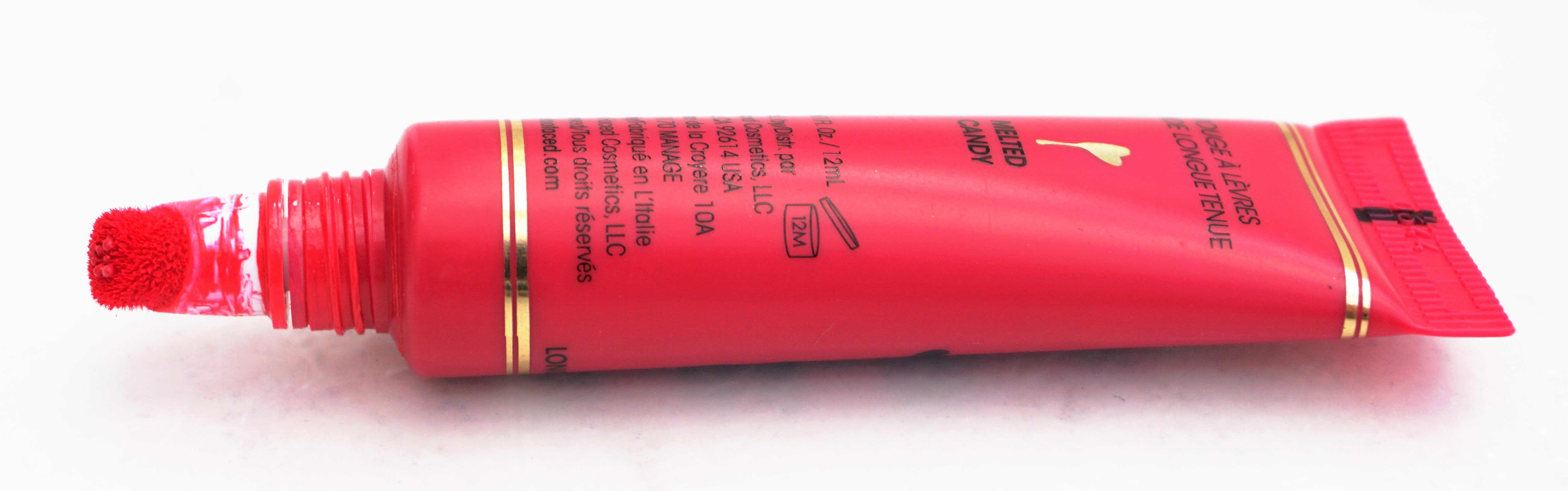 - Too Faced tubes have a mixture of black and gold writing, gold lids and the shade name printed on the back.