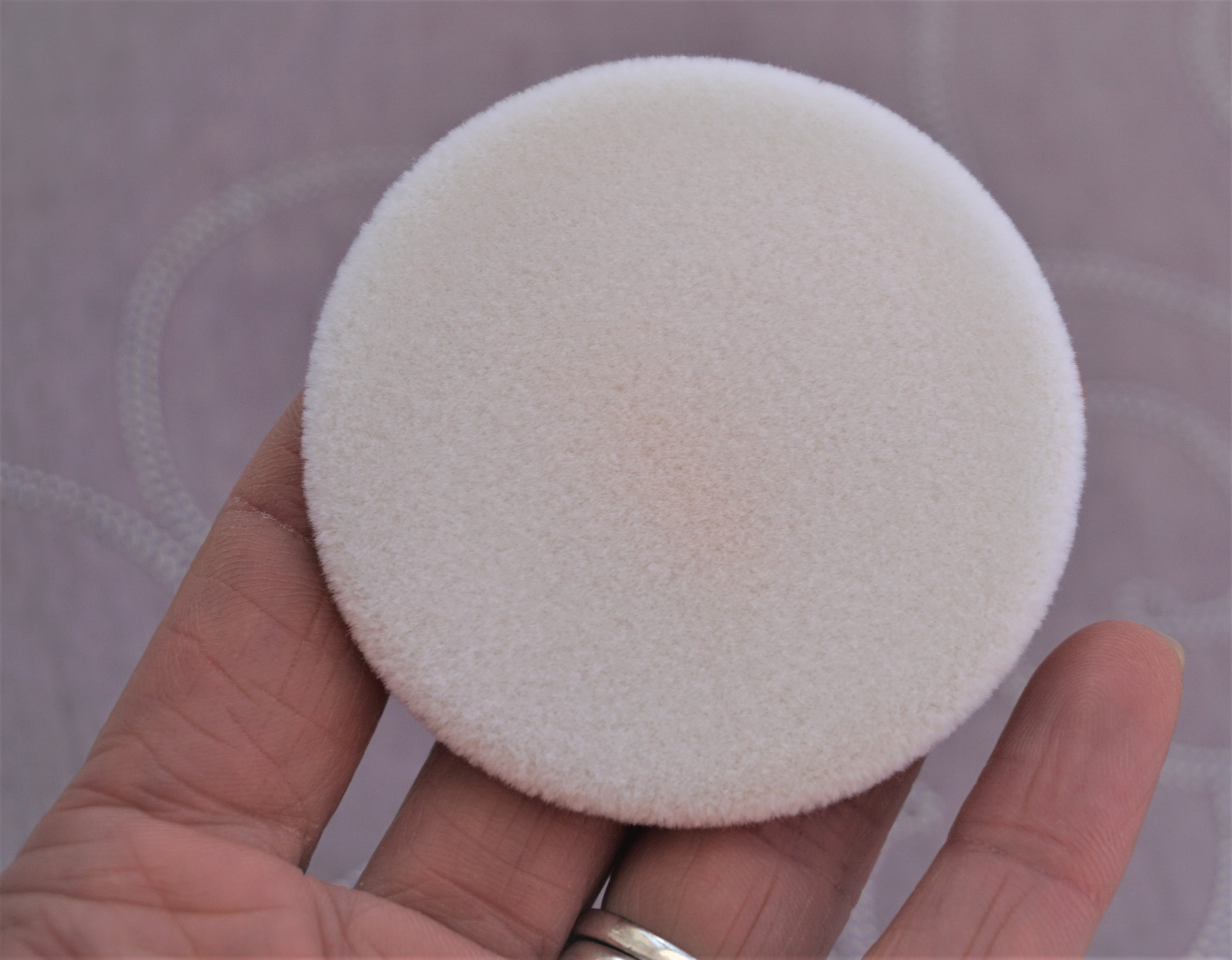 The powder puff comes with a little handle on the top which can be used to aid application of powder.