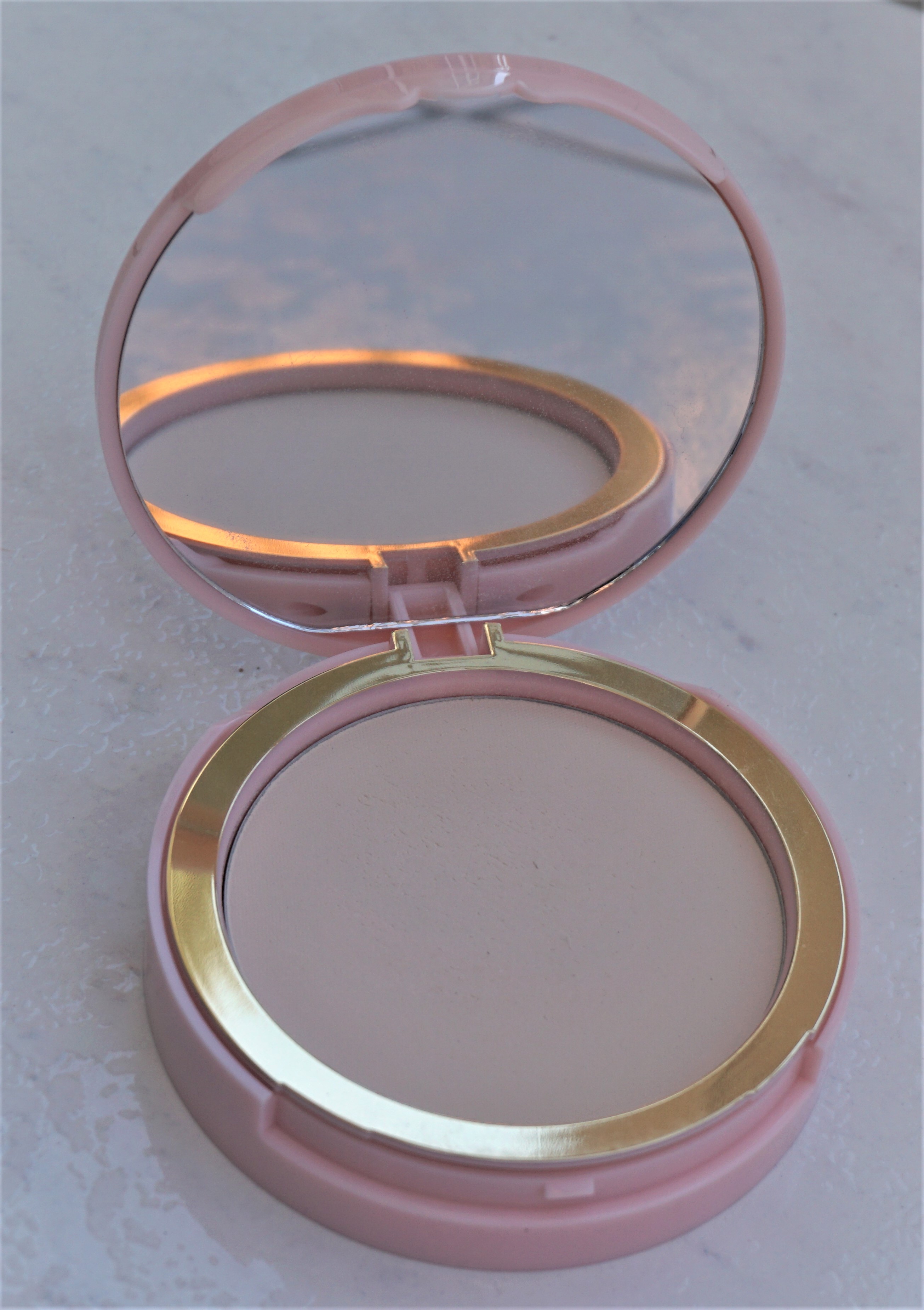 The powder comes packaged in a very pretty pale pink box with gold etching and black writing.