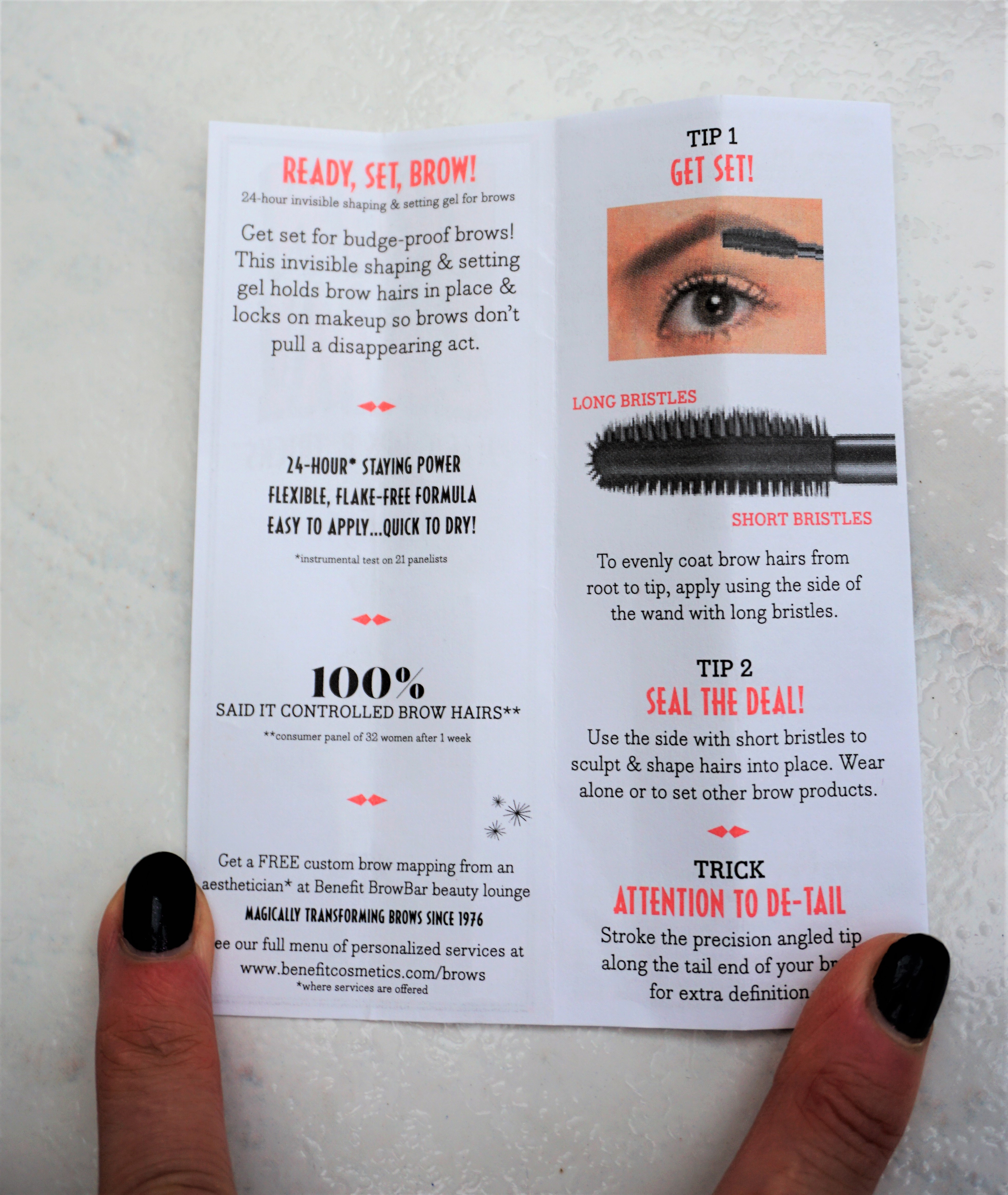 The brow gel comes with the classic Benefit Brow Zam! Tips and Tricks booklet which explains how to use the product.