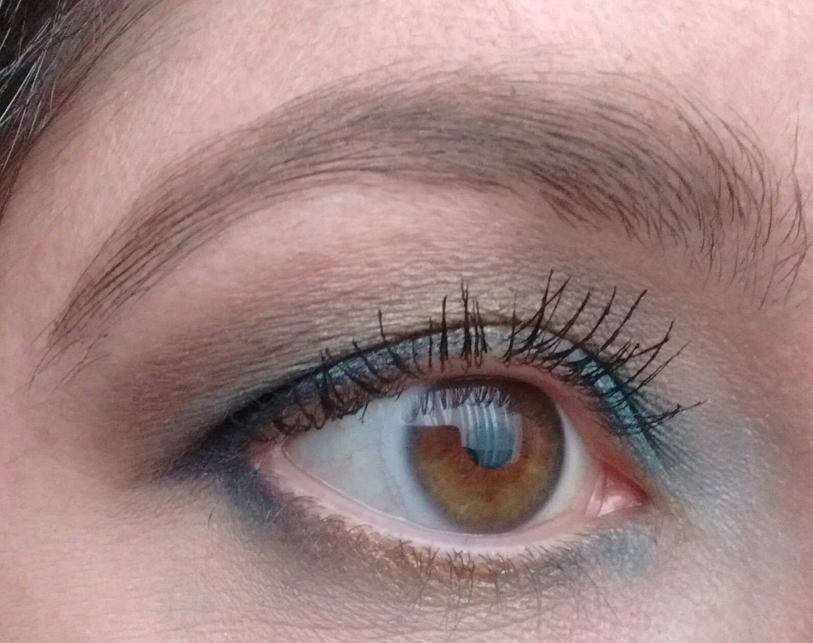I purchased the Kat Von D Metal Matte Palette when it came out in the UK last year and have been really enjoying using it to create different types of looks. I really felt like doing something different and so came up with this teal and gold highlight effect combination. I really like how it turned out – it’s softly smokey with the eyes open and then you get a real flash of colour when the eyes open and close.