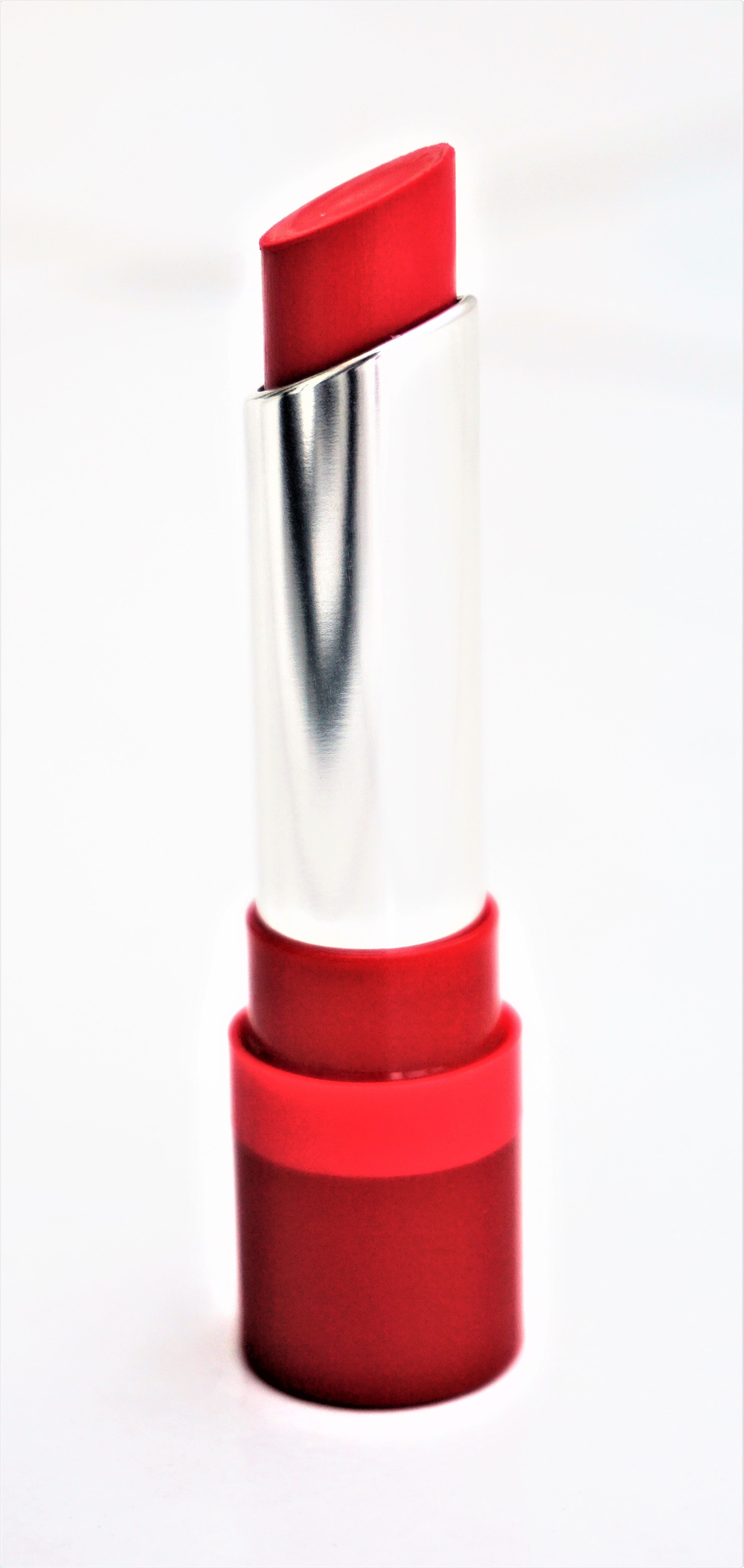 Both lipsticks come in cylindrical shaped tubes with the ‘Rimmel’ slogan embossed on the side and a crown logo on the top lid. The matte range comes in matte red tubes, whilst the traditional formulation comes in shiny black tubes. The shade for each lipstick is swirled around the base of the product, which makes it nice and easy to select a colour if you have several in the same range. The bottom of each tube has the shade number and the shade name.