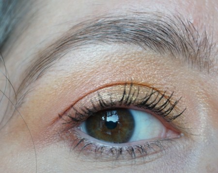 I used the Kat Von D Saint and Sinner Palette (click here to read more about this product) to create this quick and easy golden peach combination. I wanted to create something which looked fresh and bright on the eyes, compared to the smokey, sultry blue combination featured in my first Saint and Sinner look post here. I used only one brush (the MAC 239) to create this look as well, keeping things nice and simple.