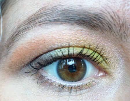 I really fancied trying out Vestment (a deep metallic blackened teal) with Exodus (a light matte acid green) together and came up with this eyeshadow combination. I added in Devil (a matte orange) into the crease to add some warmth and a punchy twist to the look.
