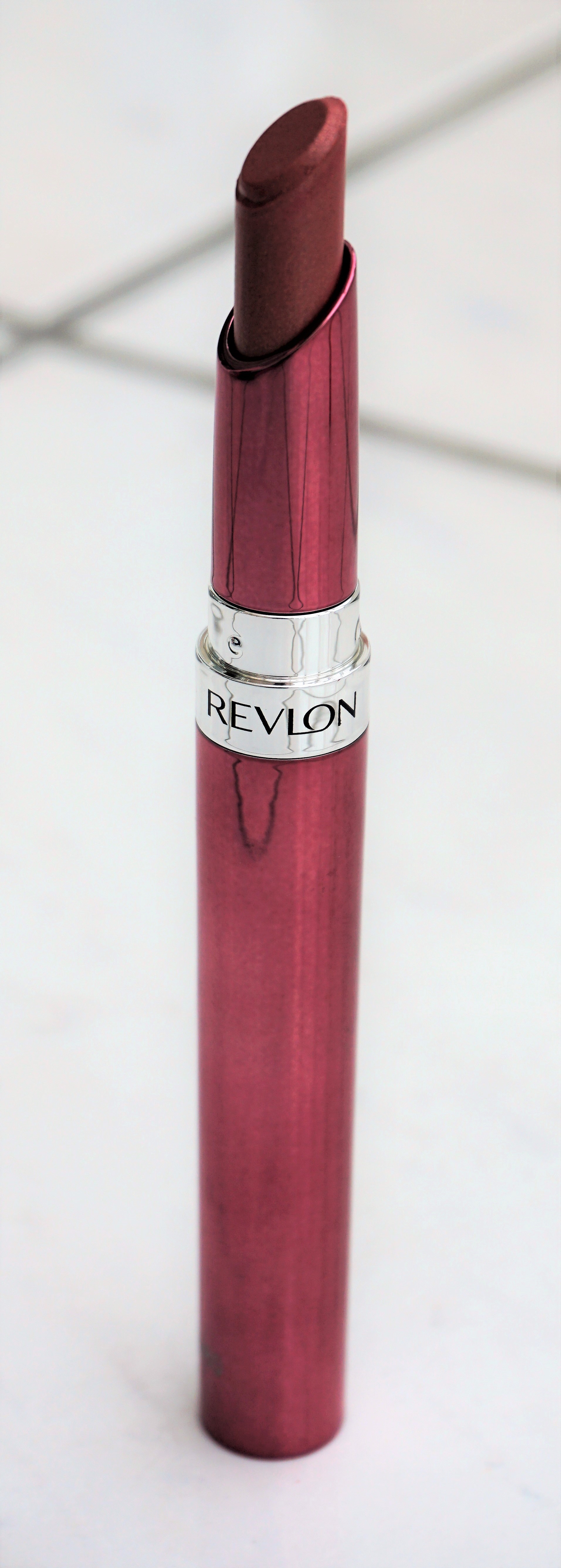 The HD Gel Lipcolors come in a slimline tube coloured in the shade of the lip colour contained inside, with a silver band saying ‘Revlon’ near the top. I like the feature of having the lipstick tube match the individual shade, as it makes it easy to pick out your chosen shade from your make-up bag/box/collection. The tube is topped with a clear plastic lid which makes a satisfying ‘click’ sound upon closing.