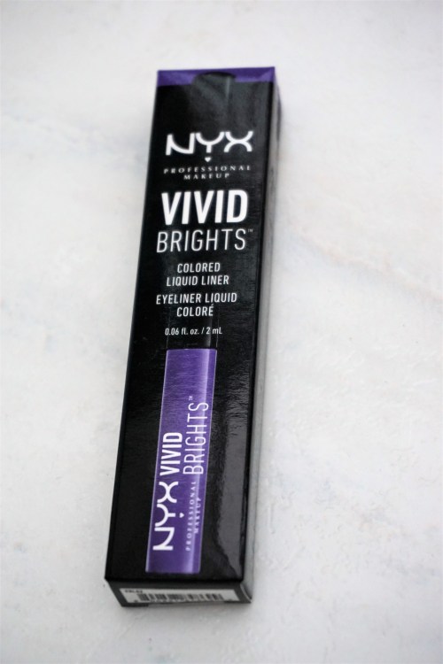 On a recent trip to Boots, I found myself browsing the NYX make-up counter and ended up picking up one of the Vivid Brights Coloured Liquid Liners in the shade ‘Vivid Violet’.  The Vivid Brights range of liquid liners has been out for a while but I haven’t looked at them before.  I’m glad I picked one up to try as I love it – relatively inexpensive, easy to apply and vivid, high impact colour in liquid form!
