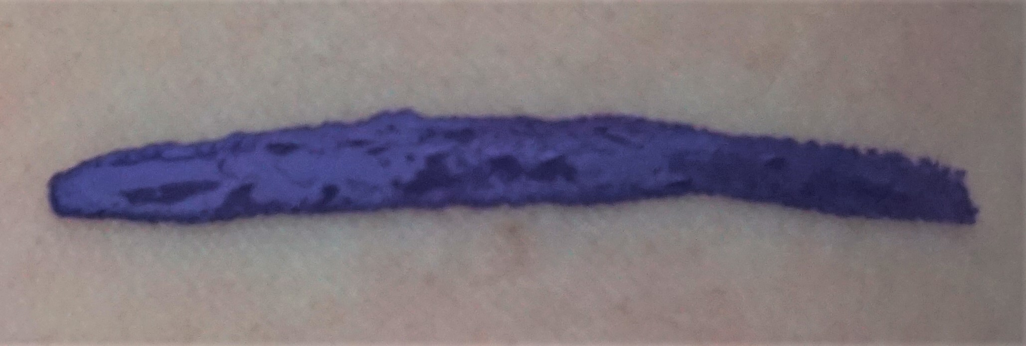 The brush tip is very thin and relatively long.  I find that the style and length of the brush tip makes it easier to get a very thin line (if that is the look you are going for).  You can also use the brush tip to get a thicker line if you build it up or apply more product.