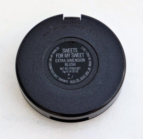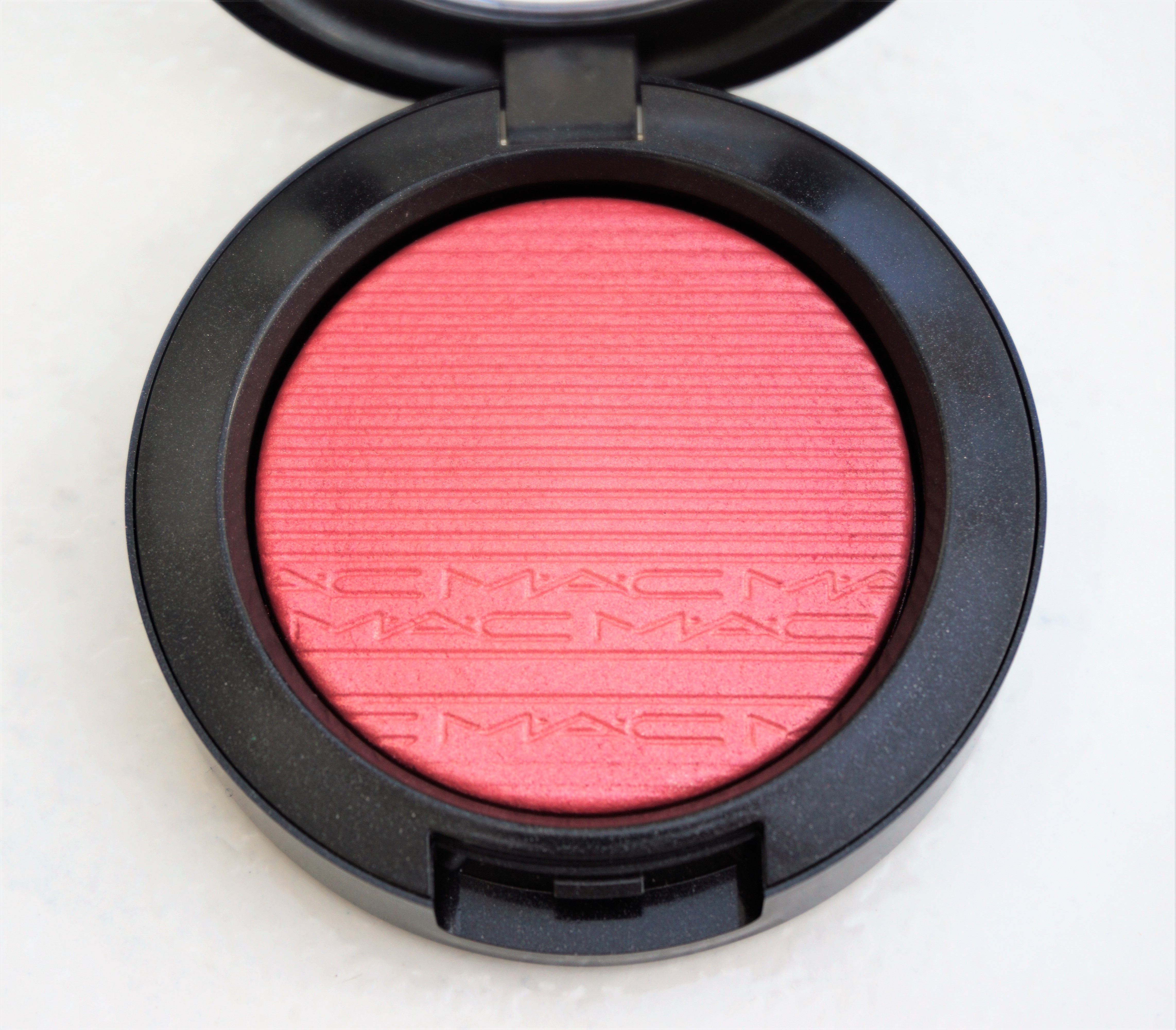 The blusher, like the other Extra Dimension products, is embossed with straight lines and the MAC logo. I’ve used the blusher several times since taking these photos and it is only now starting to wear away.