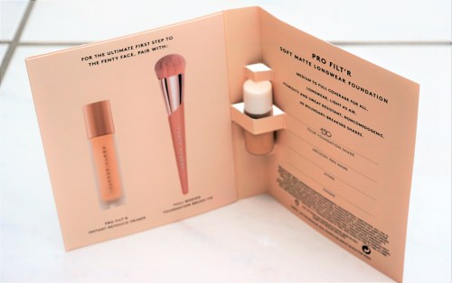 The Pro Filt’r Soft Matte Longwear Foundation was one of the most hyped products when Fenty Beauty first launched last year due to the expansive shade selection available (40 shades). As noted above, free foundation samples were being given away as part of the pop-up experience. The foundation sample was given inside a card with information on the foundation and the ‘Full-Bodied Foundation Brush’.