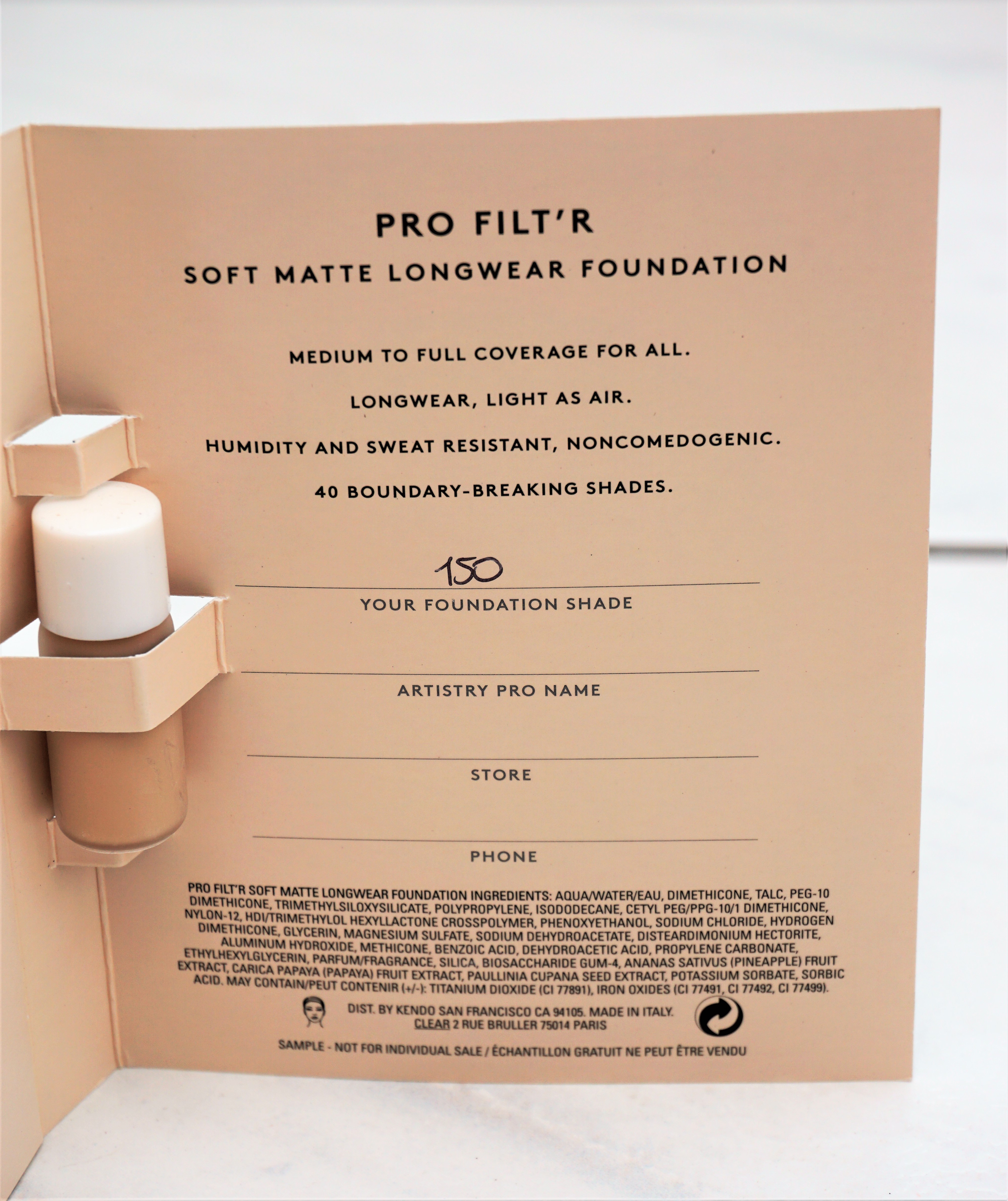 Pro Filt’r Soft Matte Longwear Foundation in ‘150’ (sample as part of free gift)