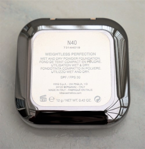 The Kiko Weightless Perfection Wet and Dry Powder Foundation comes in a choice of 12 shades, with the undertones being spread across the shades.  There are three different types of undertones: Neutral (N), Cool Rose (CR) and Warm (W).