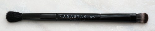 There is also a double ended brush housed in a small, indented section underneath the eyeshadows. One end of the brush is a flat shader brush, whilst the other end is a fluffy, crease/blender brush.
