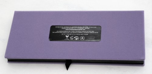 The back of the palette has a sticker providing the distribution information, brand website, where the palette and brush are made (USA and PRC, respectively) and the product weight.