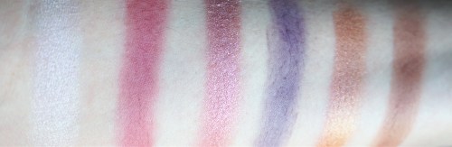 The eyeshadows in general look the same shade on the lid as they appear in the palette. The only two exceptions are Belle Violet and Pizzazz, which show up on my lids a lot lighter and pinker compared to the pan colour. They look the same as in the pan when I swatch them on my inner arm (which is lighter than the rest of my skin is more tanned from summertime), just different on my lid. The shades may look different on me due to my skin tone or my undertones. Either way, they are still beautiful shades but it’s worth noting in case you love the look of those two particular shades and want to swatch them first.