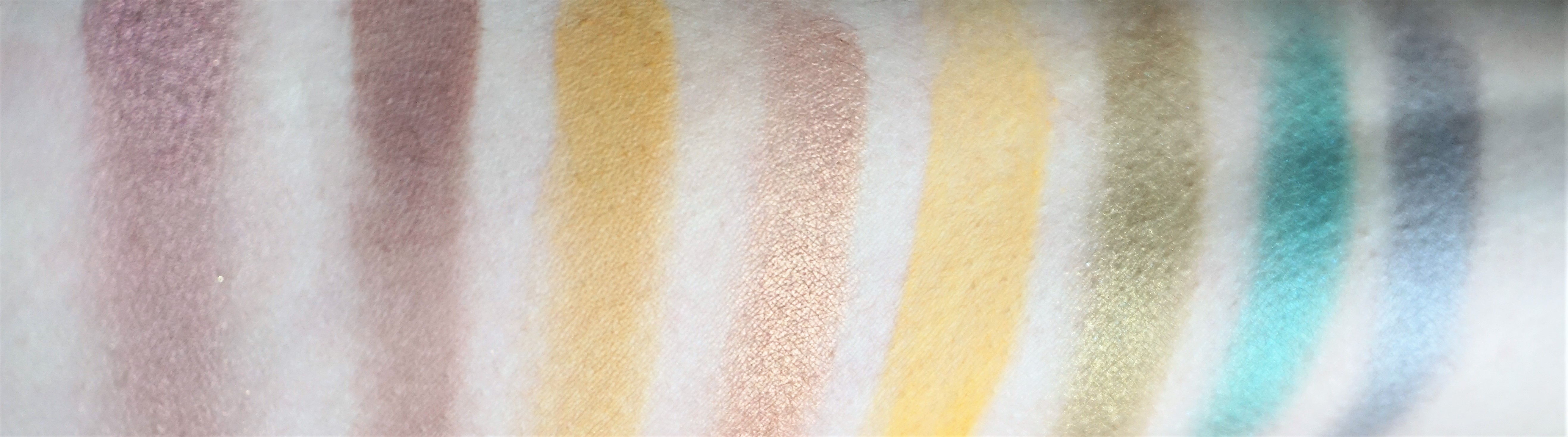 The arrangement of shades in the palette is quite helpful, as you can either focus on particular colour sections or mix and match across the palette. For example, you can concentrate on specific sections if you want to create a look following a certain colour family (e.g. more green/teal based, more yellow/orange/copper based). Alternatively, you can mix and match as you choose across the palette.