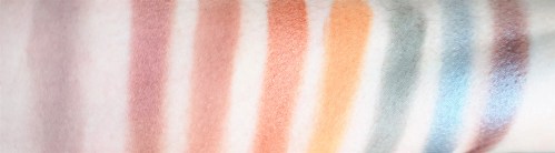 There is a huge choice in shades contained in the palette, ranging from neutrals, brights and smoky hues. The palette contains shades spanning beiges, peaches, yellows, oranges, coppers, roses, plums, greens, teals, blues, greys and blacks.
