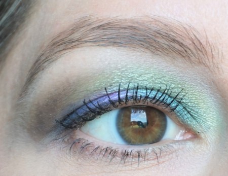 Lower Lashline: Kat Von D Ashes eyeshadow (light cool olive-taupe with gold, green and silver sparkles))