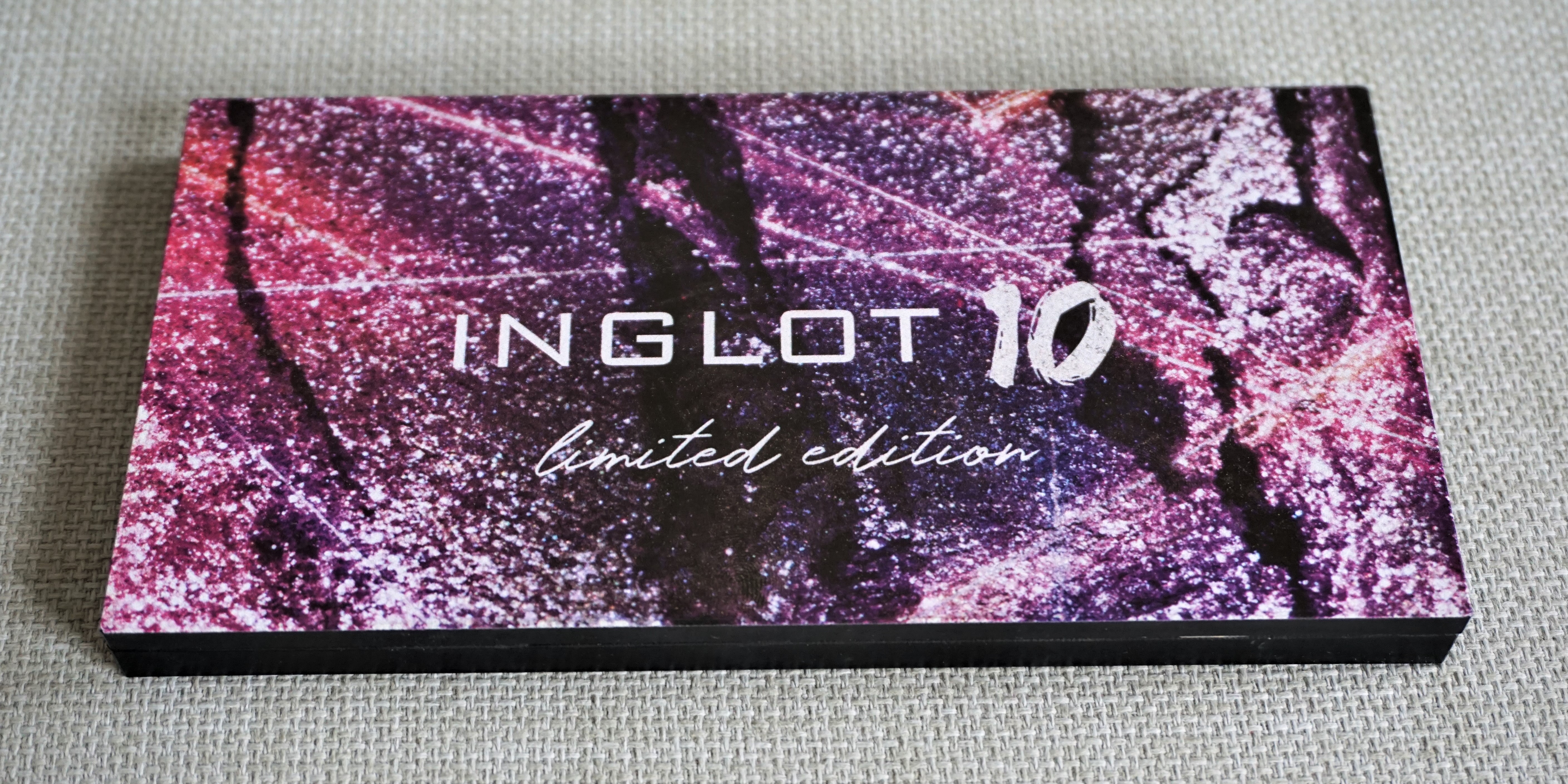 The top of the palette lid is coloured in purple, black, pink and white. ‘Inglot 10’ and ‘limited edition’ are written on the palette in white lettering. The underside of the palette lid is black with silver magnets in each corner to adhere to the palette base.