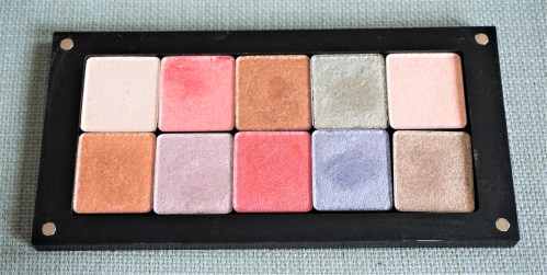 Inglot 10 limited edition Freedom Flexi Palette containing Inglot 10 Cream Pressed Pigment Eyeshadows (lid removed)