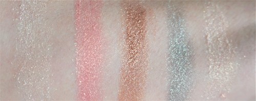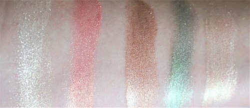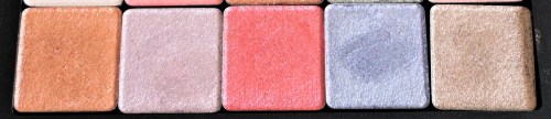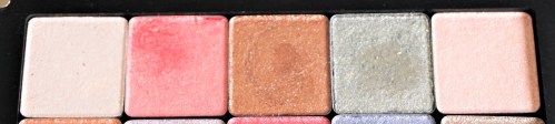 I’ve given a breakdown of the shades below, along with a close-up of the top row and bottom row of the filled palette.