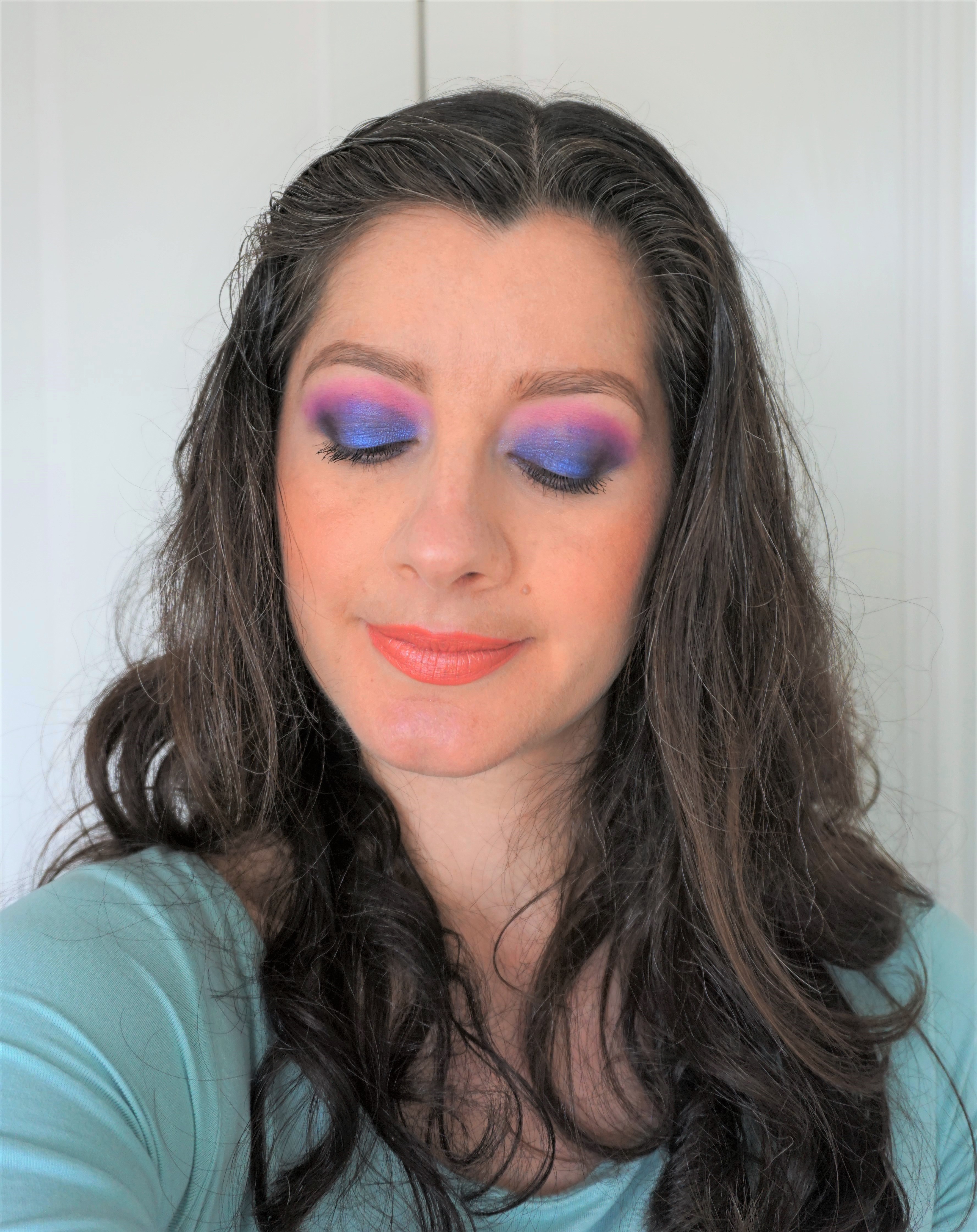 I couldn’t wait to try out Rise Up from the the Morphe Live in Color Artistry Palette and came up with this bold blue and pink combination. I love the contrast of pink and blue on the lid and the shades also blended together to create a purplish effect in the crease.