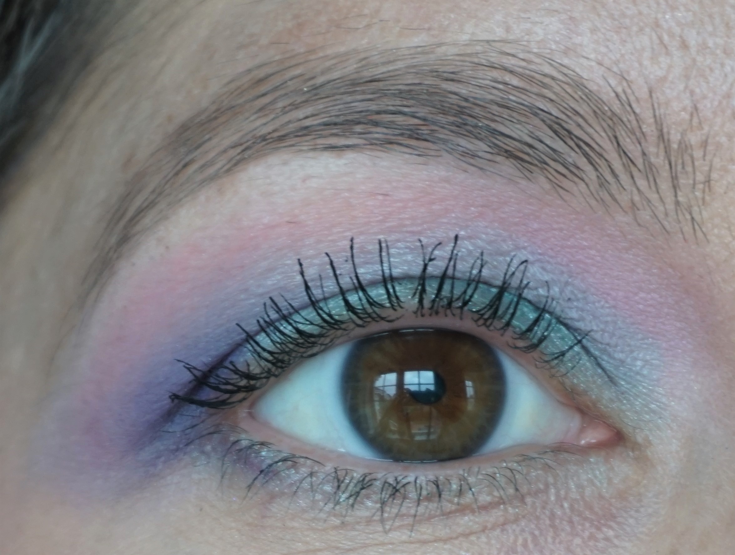 3. Take a crease/blender brush (e.g. MAC 226) and sweep Heart into the crease. Heart will show up as pink in the crease and turn a slight blue-ish shade where it meets the edges of Make Magic.